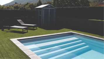 Une piscine aux parois verticales, avec une zone de baignade si grande qu'elle donne à ce modèle une illusion de piscine XXL.